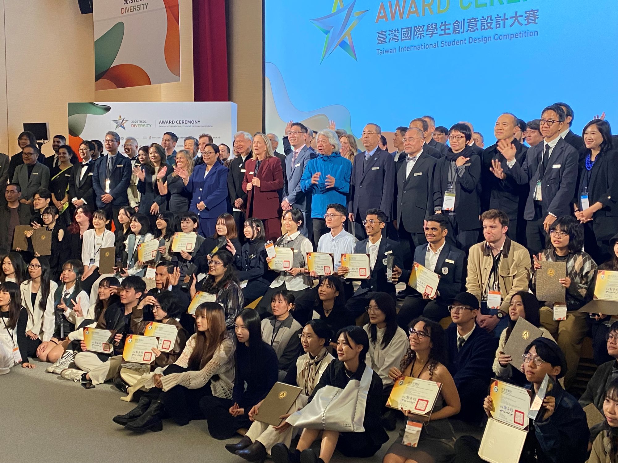由教育部主辦、國立臺灣科技大學執行的國際學生設計競賽「2025臺灣國際學生創意設計大賽」頒獎典禮今(9)日盛大登場!本屆賽事共有來自全球73個國家地區、1,029所學校、共16,329件作品參賽,最終評選出76件優秀作品獲獎。臺灣學生表現亮眼,不僅勇奪賽事最高榮譽「年度大獎」,更獲得「視覺設計類」及「時尚設計類」金獎等多項殊榮,展現我國設計學子的創意能量與國際競爭力。