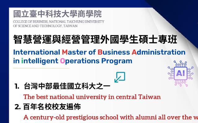 由國立臺中科技大學商學院主辦,iOMBA國際碩士專班誠摯邀請...