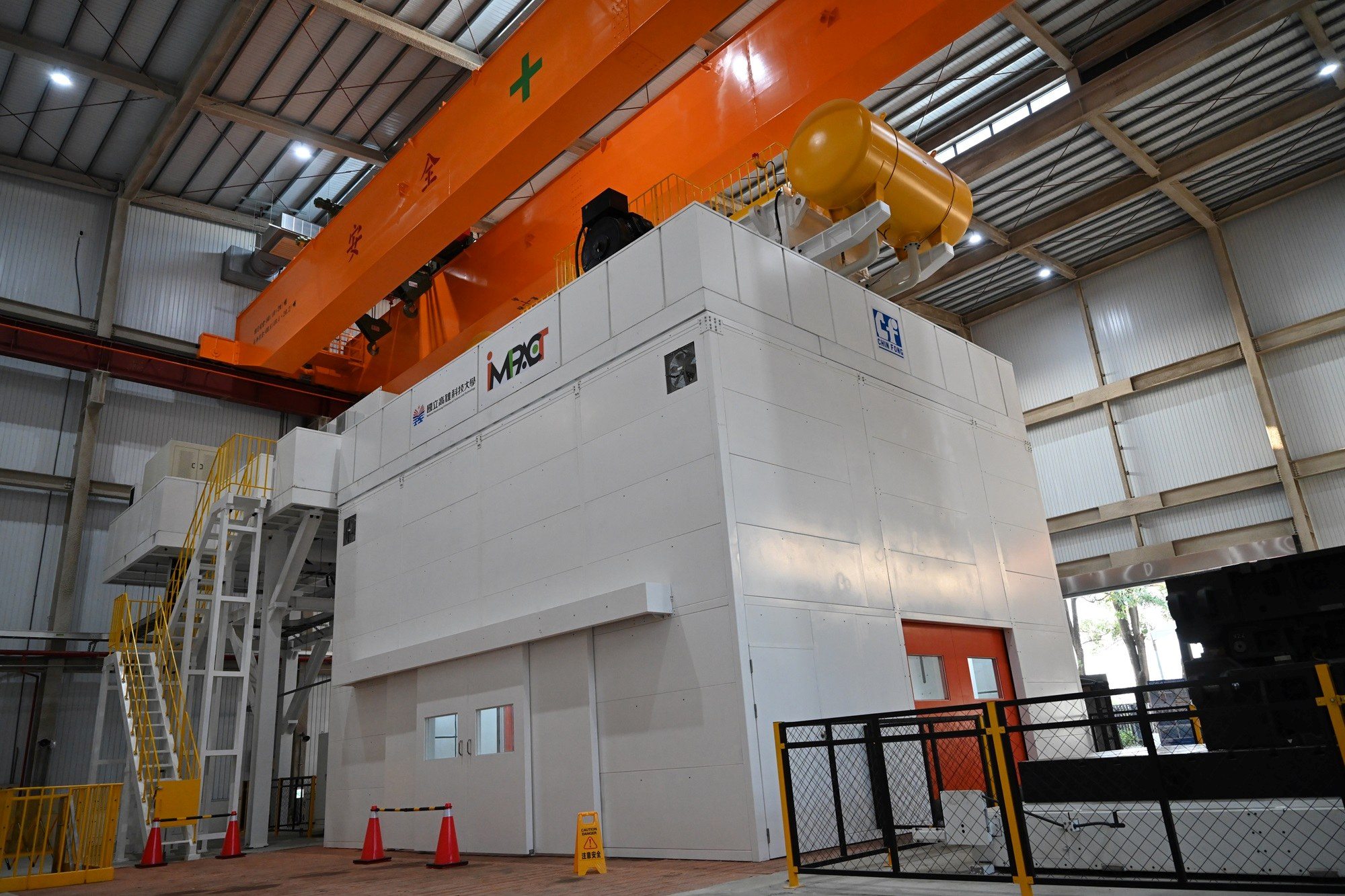 高科大是目前國內學生人數最多、系所最完整的技專校院,除具有強大的機械相關專業技術能量之外,「先進材料成形技術中心」所在第一校區,緊鄰橋頭科學園區,可直接接軌產業園區與在地產業,作為產業試量產的實作基地,全面性滿足業界所需。「先進材料成形技術中心」除政府補助外,學校亦自籌經費,合計投入3.5億元,引進1,600噸大型伺服沖壓成形設備,搭配300噸伺服模墊及移動平板,成為全國學研單位中最大型的伺服沖床。這項設備可滿足航空、國防、電動車、軌道運輸等產業對於大型複雜板金件成形的高階需求,有效解決高剛性材料一體成形與節能減碳的挑戰,未來將作為產業試量產的實作基地,進一步推動次世代精密機械與先進材料成形技術的研發聚落。