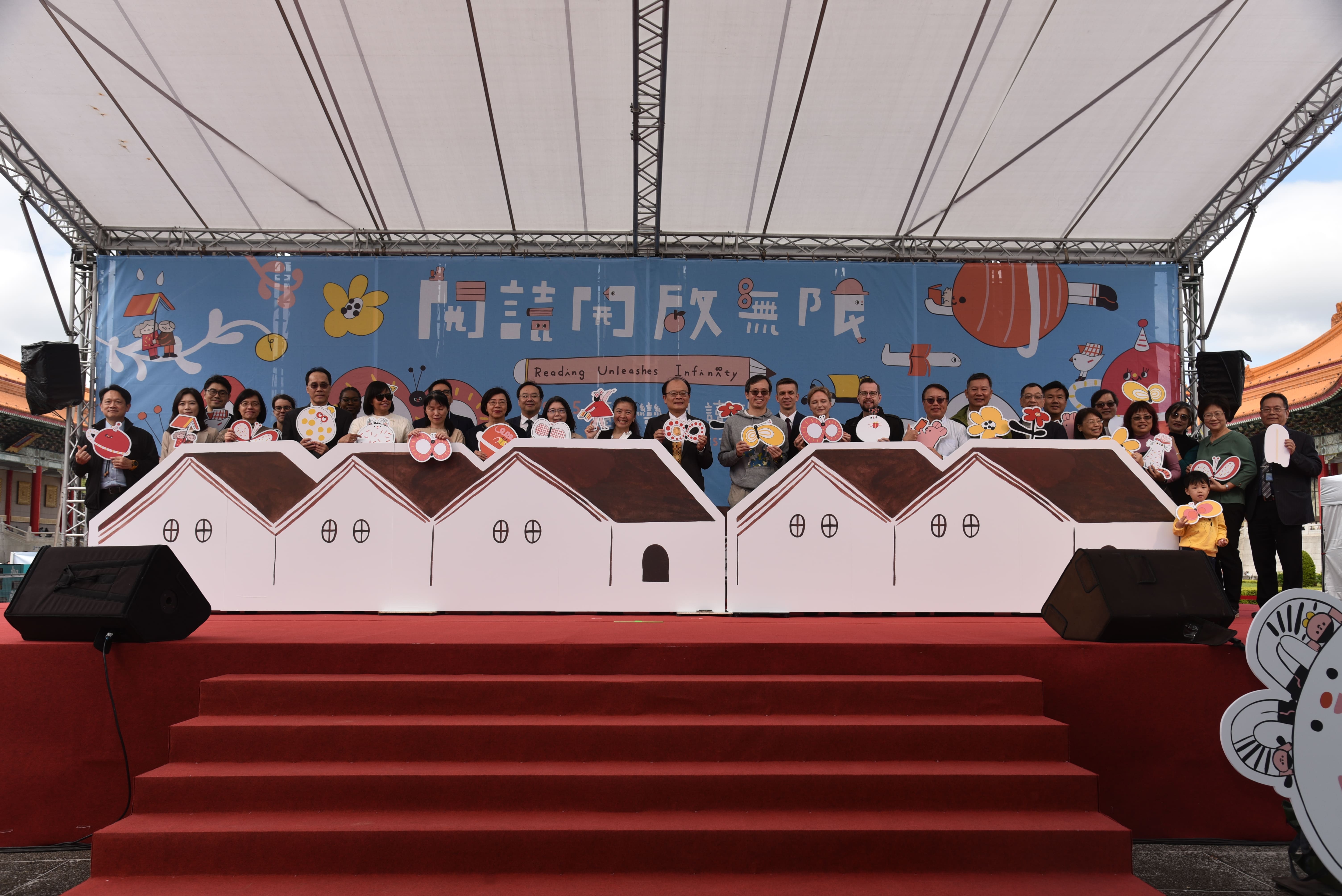 教育部劉國偉政務次長、國家圖書館王涵青館長及各合辦單位貴賓共同參與開幕典禮。活動啟動儀式為一同拼貼「閱讀築夢、共創知識無限」的未來知識屋。王館長更親自化身為說故事大使,擔任「歡樂故事村」幼幼聽書趣故事屋的神秘嘉賓,帶領現場聽眾進入一趟充滿想像力的圖書館奇幻旅程。