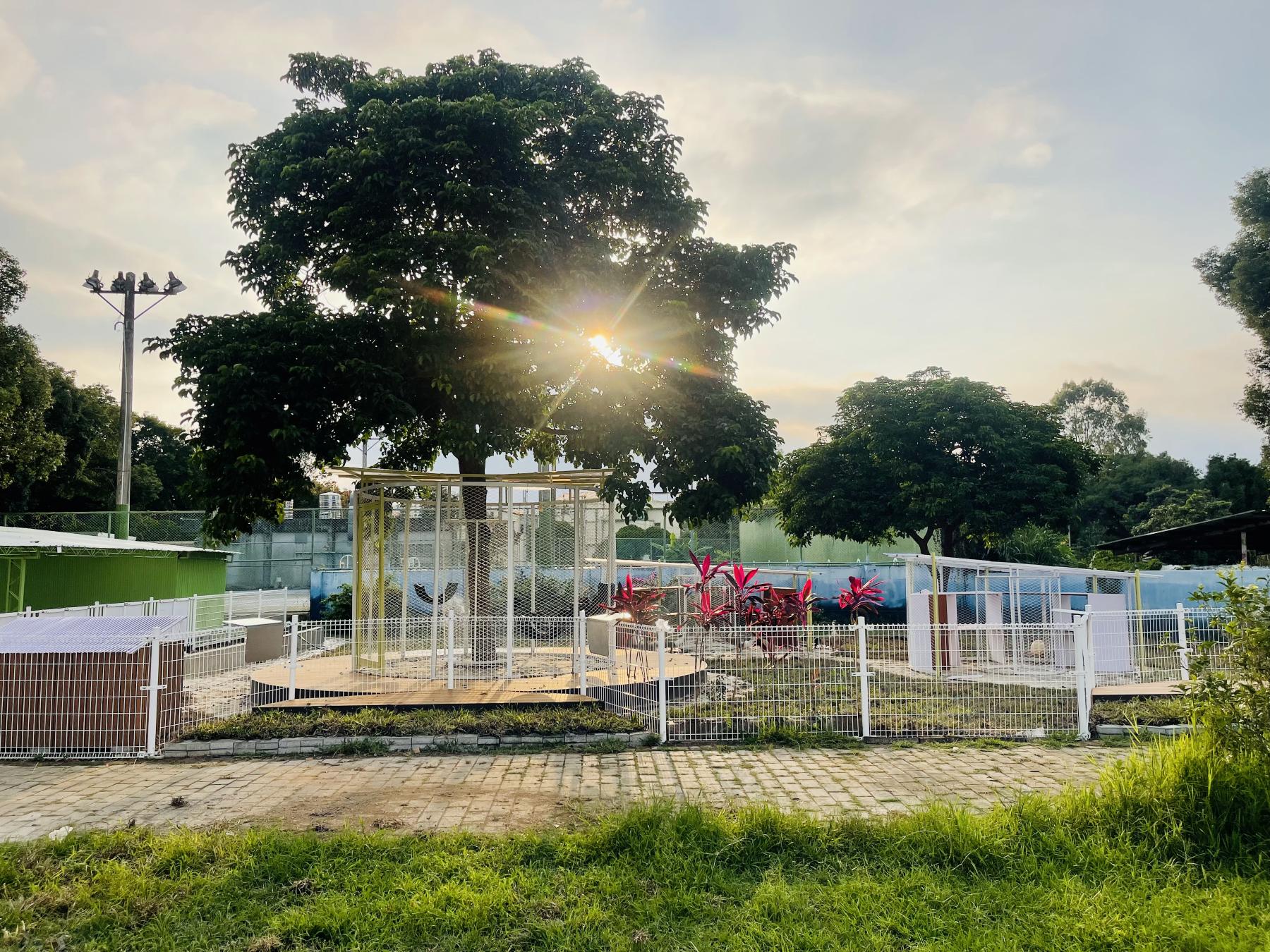 位於臺灣重要香菇產區的臺中市新社國小,學校為活化校內的香菇寮與禽類養殖場,與校內生命教育、探索活動等課程活動結合,藉由計畫團隊協助,將香菇寮與禽類養殖場連結成一條美感學習步道。透過重整香菇寮,以及師生共同整理週邊與栽種香草植物,讓香菇寮轉換成為一座明亮通透的多功能教學場域,讓學生在校園環境中學習。禽類養殖場則打破過去陳舊、髒亂的印象,白色網狀柵欄兩側的觀察平臺及透明紀錄板設計,是師生們最佳生命教育觀測站,培養學生觀察力、照護意識與生命教育。將校園空間轉化為日常可用的戶外第二教室,讓學生在環境中學習。