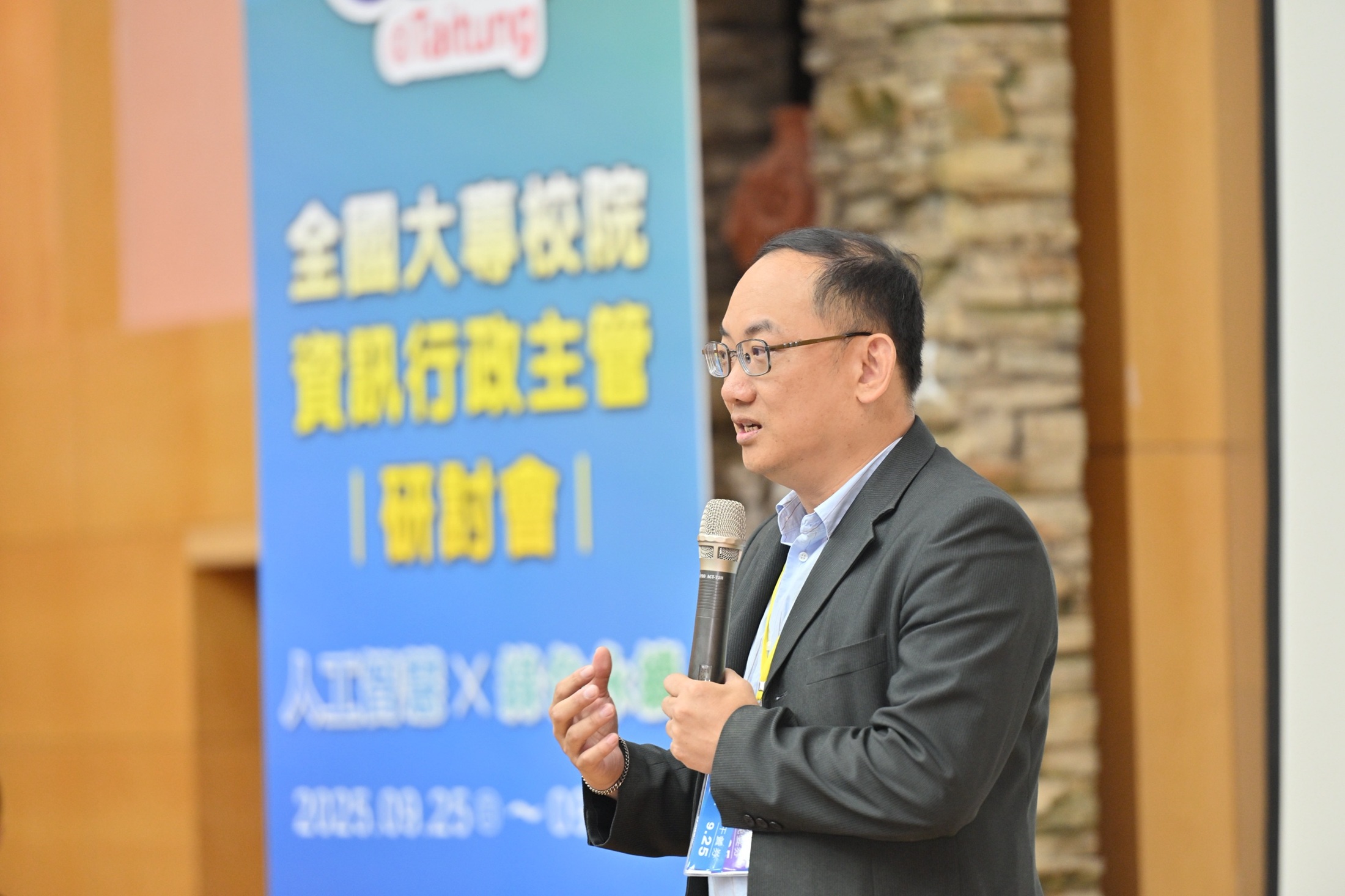 本屆研討會以AI與永續為主軸,呼應全球數位化與永續治理的發展趨勢。教育部資科司吳穎沺司長於致詞中指出,AI技術已深刻影響學校教學、研究與行政運作,不僅提升效率,更開啟教育創新的新可能;同時強調,永續發展理念應融入數位基礎建設,兼顧能源效率、碳排管理與社會責任,以建構具韌性的校園數位生態。
