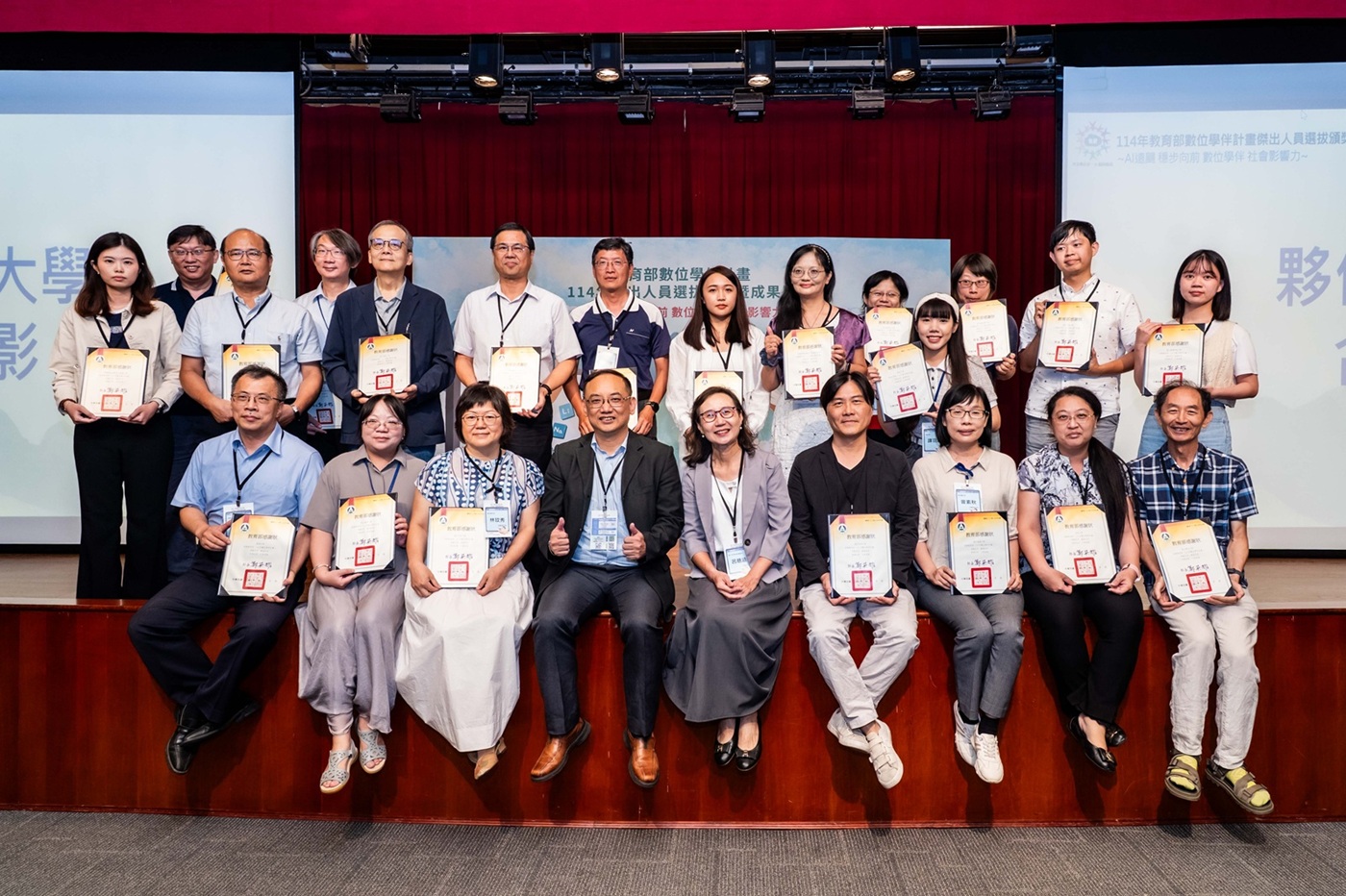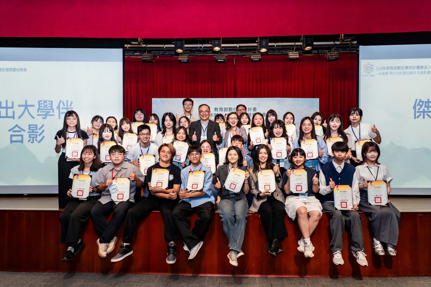 教育部今(5)日於輔仁大學辦理「114年傑出人員選拔頒獎暨成果展」,114年數位學伴計畫傑出人員選拔結果豐碩,計有19位國民中小學傑出帶班老師、21位夥伴大學傑出帶班老師及35位傑出大學伴,共計75位獲獎人員。