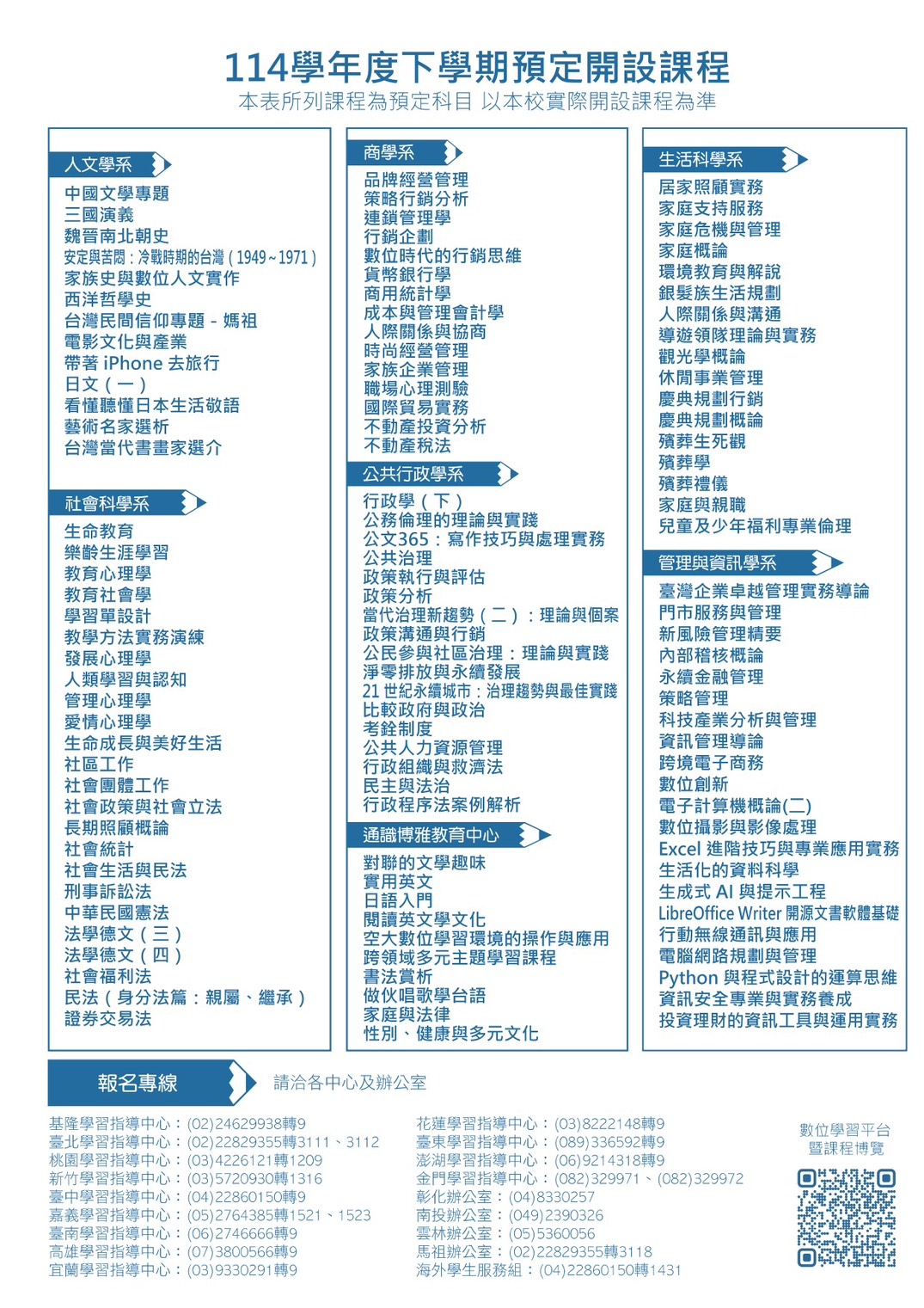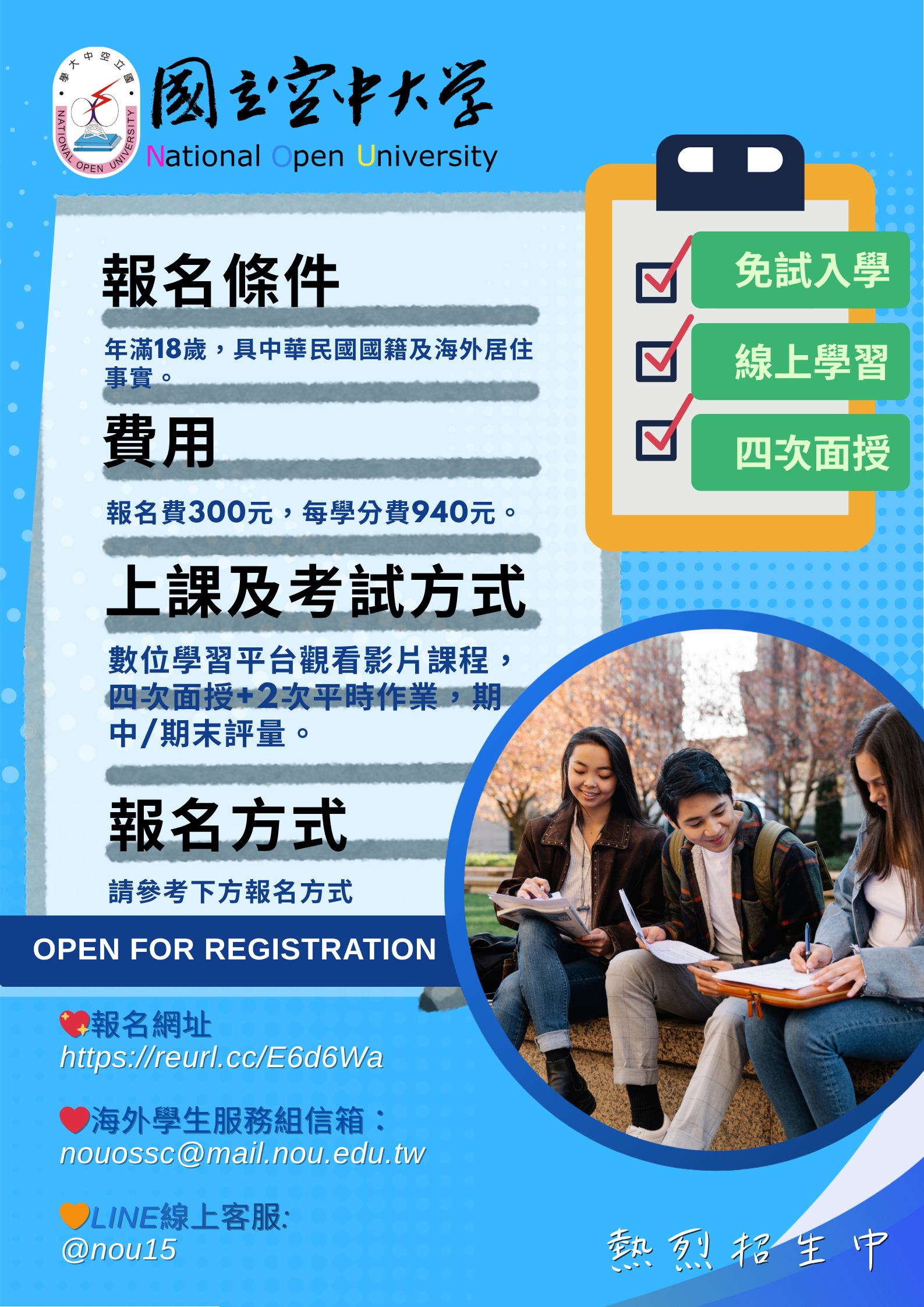 國立空中大學海外學生服務中心114學年度上學期招生中